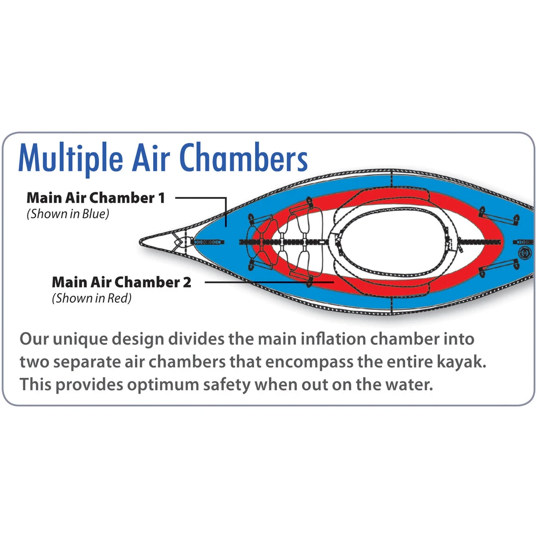 The sporty Advanced Elements Lagoon1 Inflatable Kayak is so unique that you will have complete strangers asking questions about it. Its bow and stern have fixed rigid forms that help cut through the waves and keep you on course. It has an inner tube cover for increased rigidity and durability.