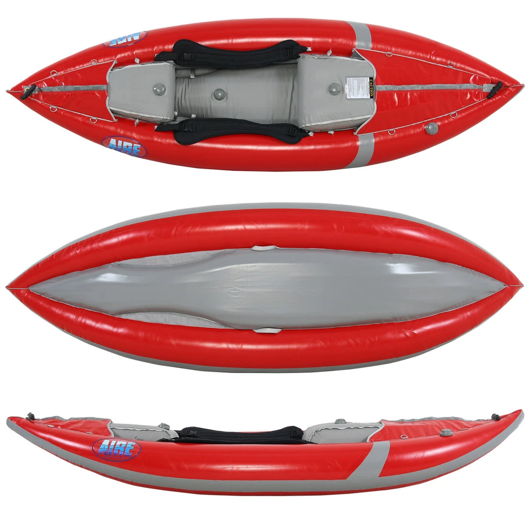 The AIRE Force inflatable kayak mimics the maneuverability of hard-shell kayaks while providing the security and safety of an inflatable kayak. It surfs waves, punches through holes and maneuvers quickly. No other inflatable comes close to matching the Force’s quickness and river play performance.