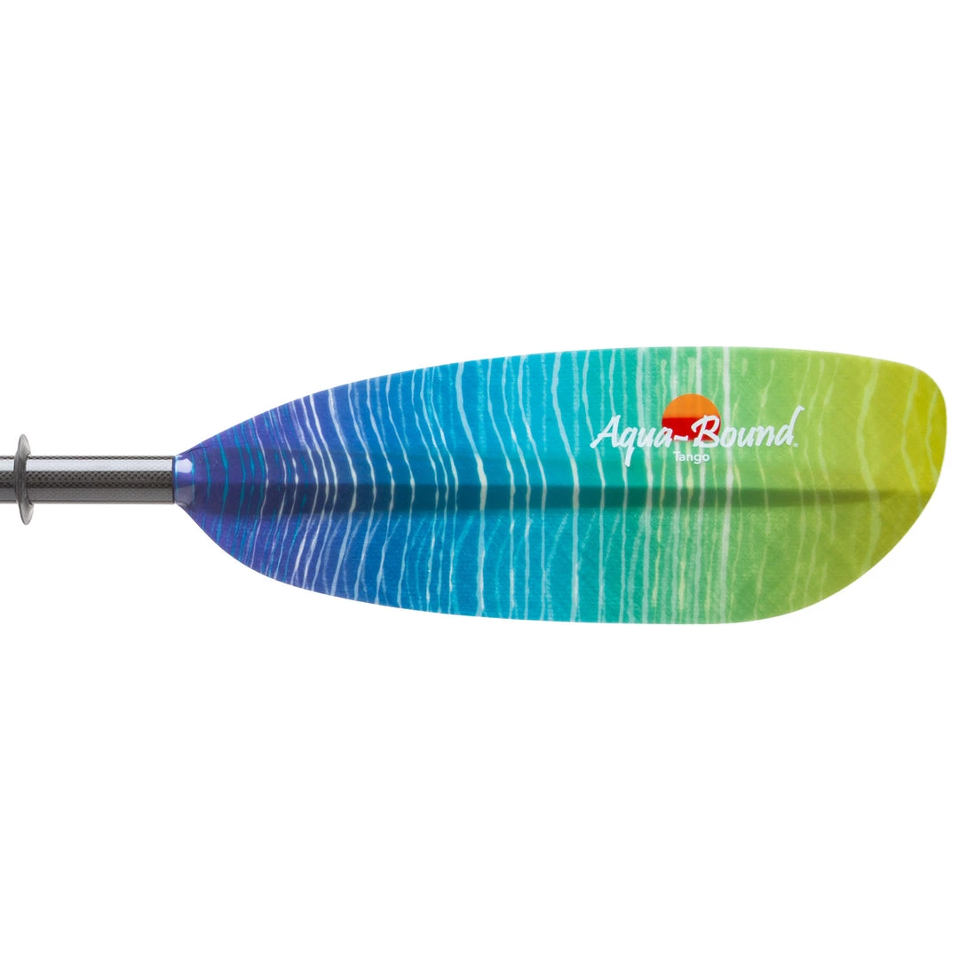 The Aqua-Bound Tango Fiberglass Bent Shaft 2-Piece Kayak Paddle with its long slender blades is designed for low-angle, more relaxed paddlers. Along with the naturally comfortable, ergonomic 3K plain weave carbon shaft, it has a super light swing weight yet is strong and very durable.