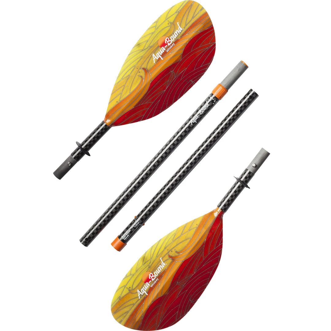 The Aqua-Bound Whiskey Fiberglass 4-Piece Kayak Paddle is perfect for high-angle and high-energy paddlers. With large blades for a bigger bite, it delivers maximum torque with every stroke for silky-smooth lightweight performance. The seamless adjustable Posi-Lok ferrule also means easy storage.