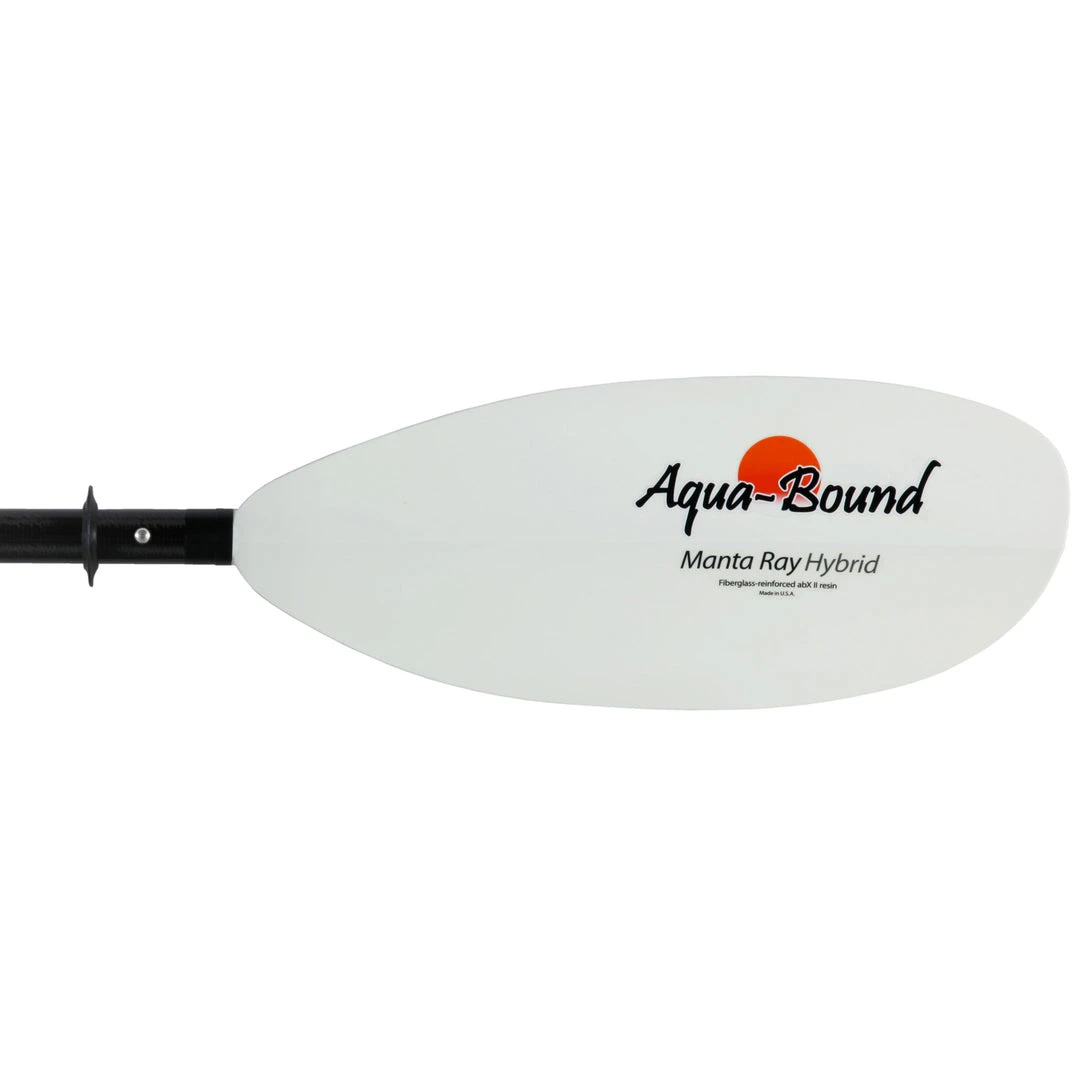 The Aqua-Bound Manta Ray Hybrid Posi-Lok 4-Piece Kayak Paddle gives you a better workout, with a bigger bite, more control, and high angle paddling. Featuring Aqua Bounds exclusive abX II blade and all carbon shaft, the Manta Ray hybrid paddle has more horsepower for big boats and moving water.