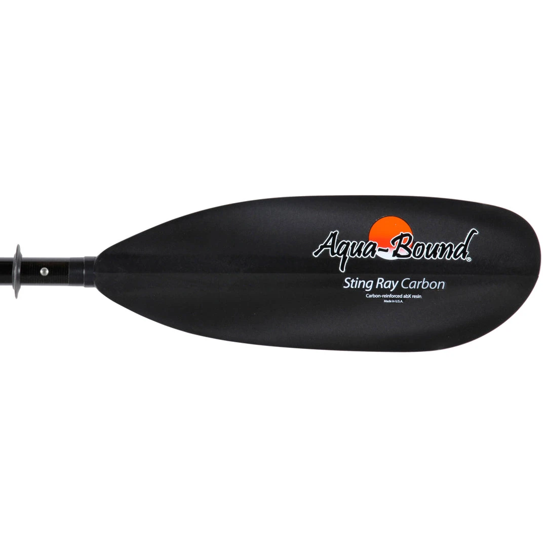 The Aqua-Bound Sting Ray Carbon Posi-Lok 4-Piece Paddle will lighten your day, not your standards. A popular blade style for responsive paddling and all-around efficiency, the Sting Ray features a 100% carbon shaft and carbon-reinforced blades for superior performance with low swing weight.