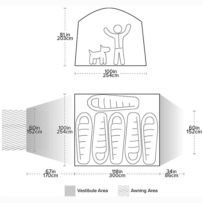 - Awning-style door on the front vestibule can be staked out as a sunshade