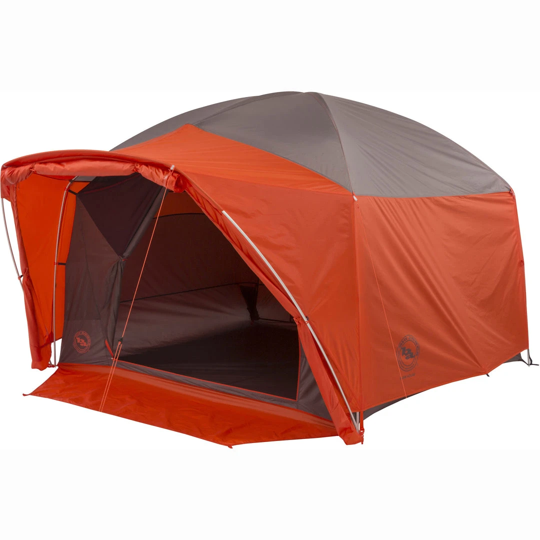 The Big Agnes Bunk House 6 Person Camping Tent is a spacious family or group tent with an oversized, pole-supported front vestibule for awning-covered camp-chair chilling or covered gear storage, big enough for extra gear or your camp chairs.