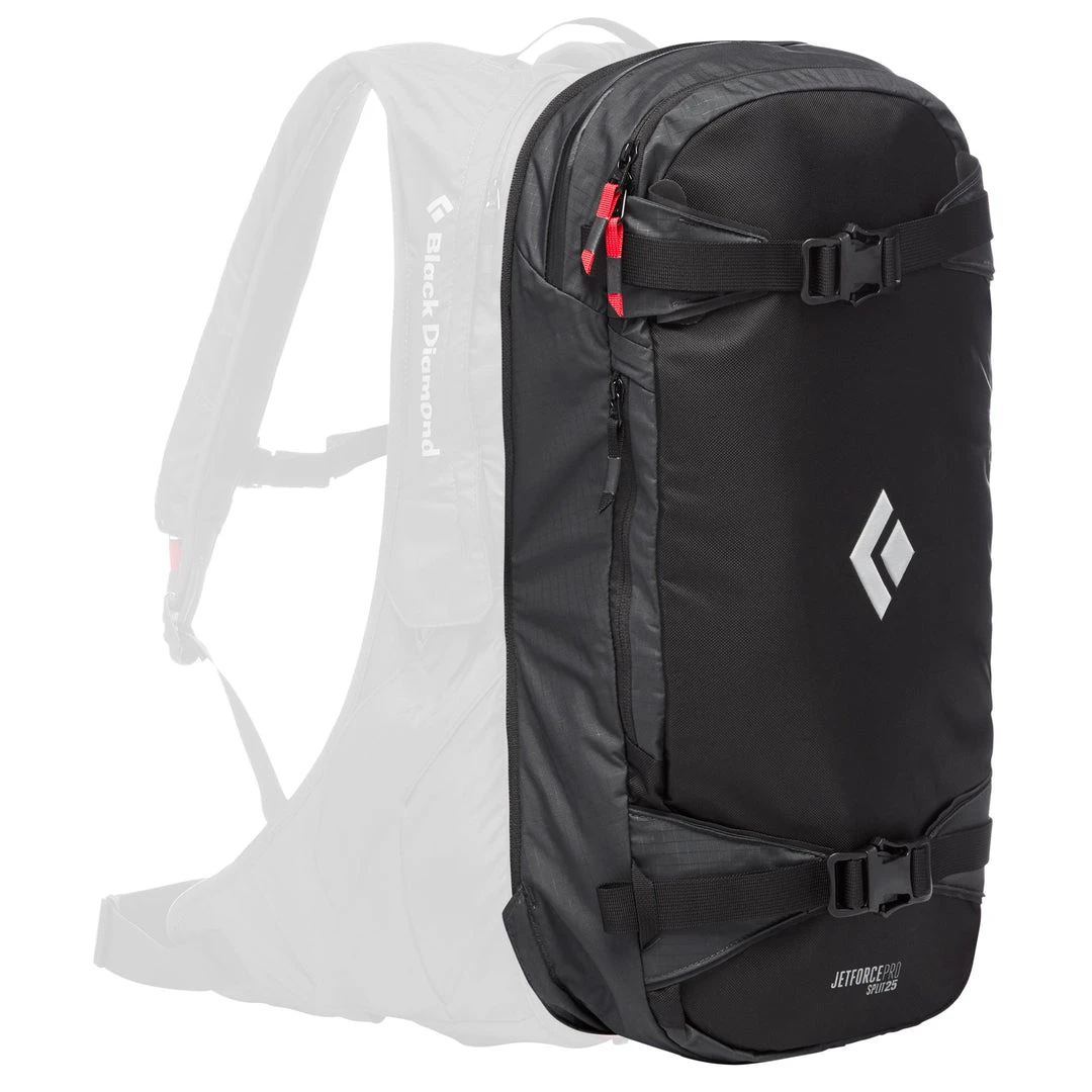 The Black Diamond JetForce Pro Split Booster packs attach to Black Diamond new modular JetForce Pro system, giving you the option of customizing your airbag pack with a 10-liter, 25-liter, or 35-liter splitboard option, adding versatility to your backcountry adventures.