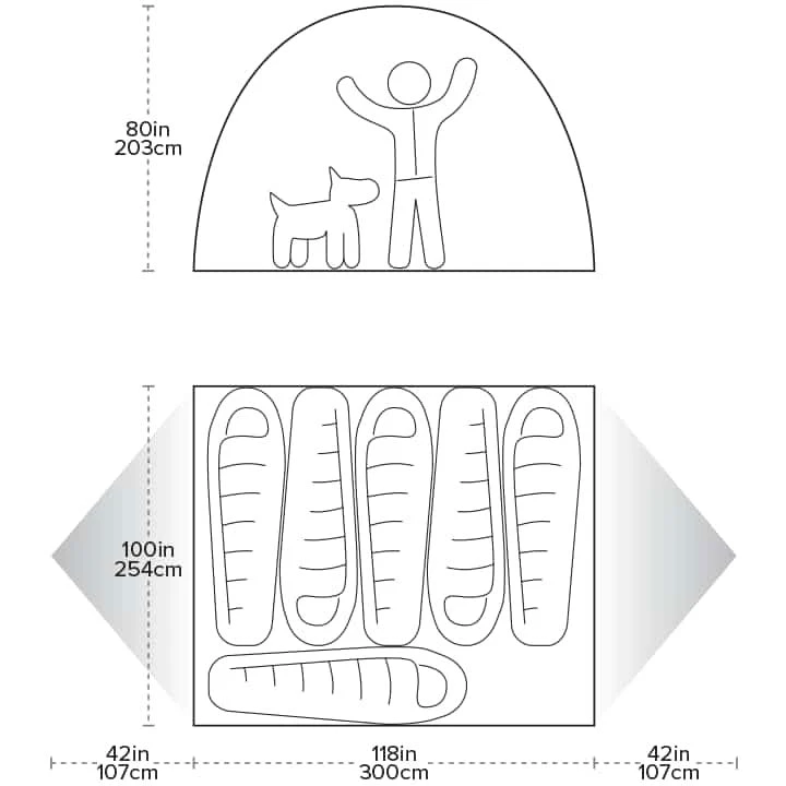 - Pressfit aluminum pole set attaches to tent body with plastic clips and sleeves