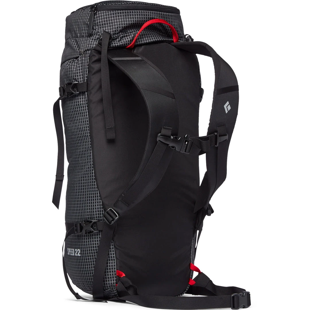 Versatile, lightweight, and durable, the Black Diamond Speed 22L Backpack provides comfort and improved moisture-wicking ability during long-route alpine and rock climbing excursions. Its updated Ice Tool Pick Pockets provide secure ice tool attachment for an easy alpine ascent.