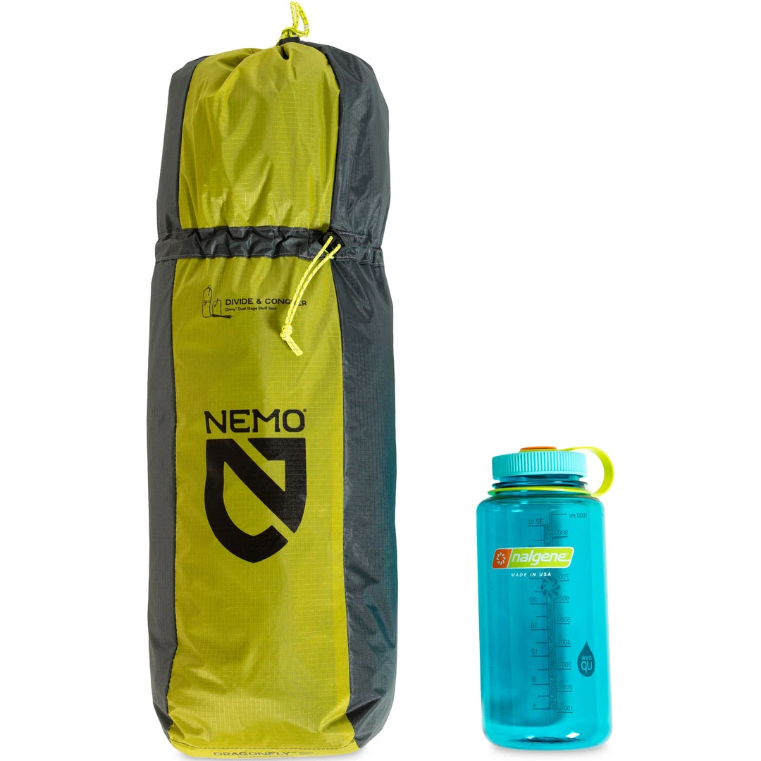 The Nemo Dragonfly 3-Person Camping Tent fills the void for most backpackers with an ideal balance of weight & livability in a freestanding tent. The large trapezoidal vestibules are designed to fit gear without obstructing entry & have multiple roll-back points to customize visibility & coverage.