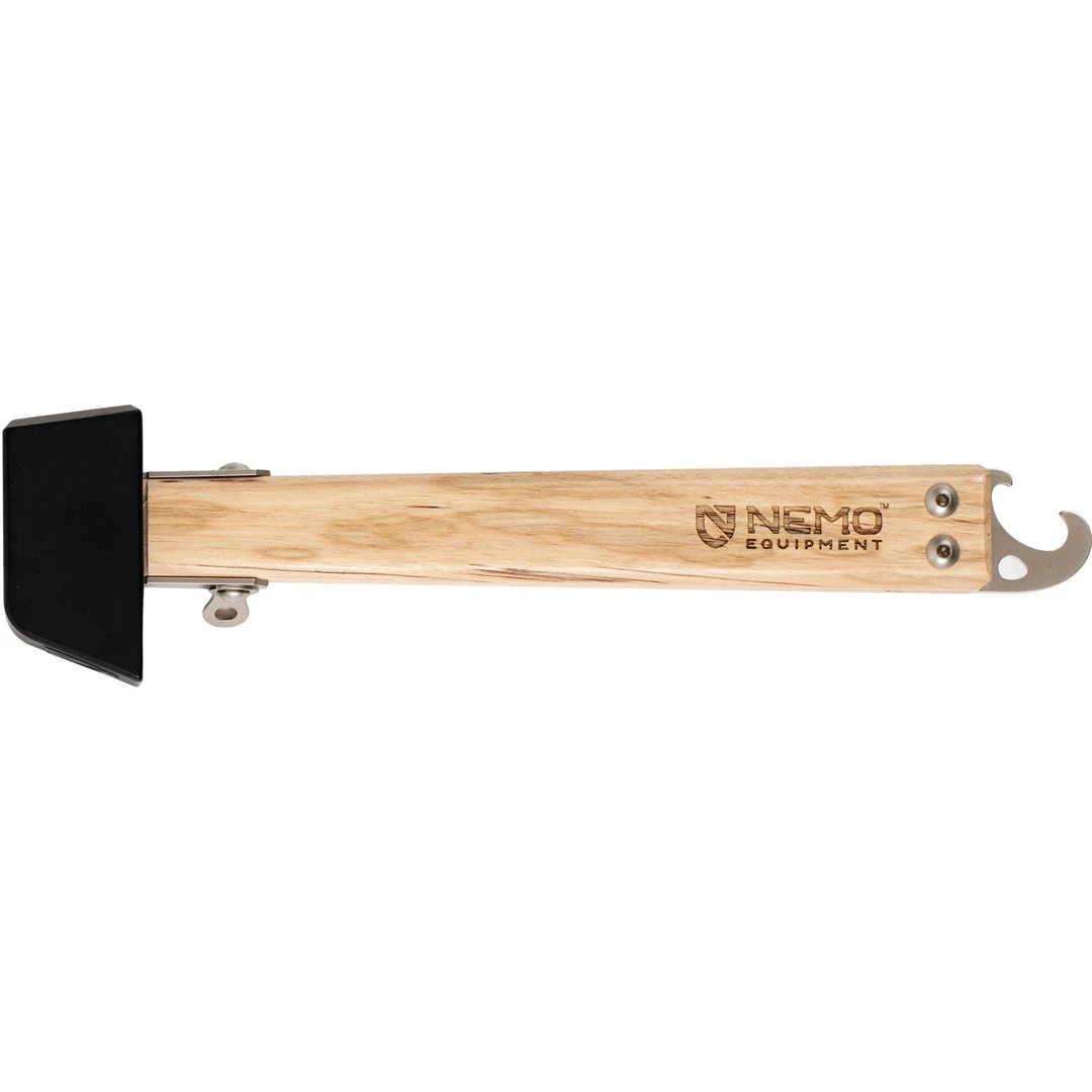 The Nemo Meldr Camping Hammer brings craftsmanship from the woodshop to the tent stake hammer with this striking, heirloom-quality camp tool. The solid cast stainless steel head is anchored with custom hardware to the artfully tapered, perfectly balanced hickory shaft.