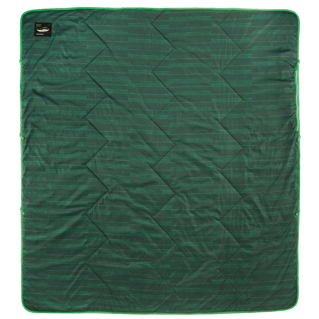 The Therm-A-Rest Argo Double Wide Synthetic Blanket uses eraLoft insulation to provide packable and water-resistant warmth around camp. The soft-touch polyester lining is soft and cozy, while snap loops allow you to use the Argo by itself or as a part of your sleep system.