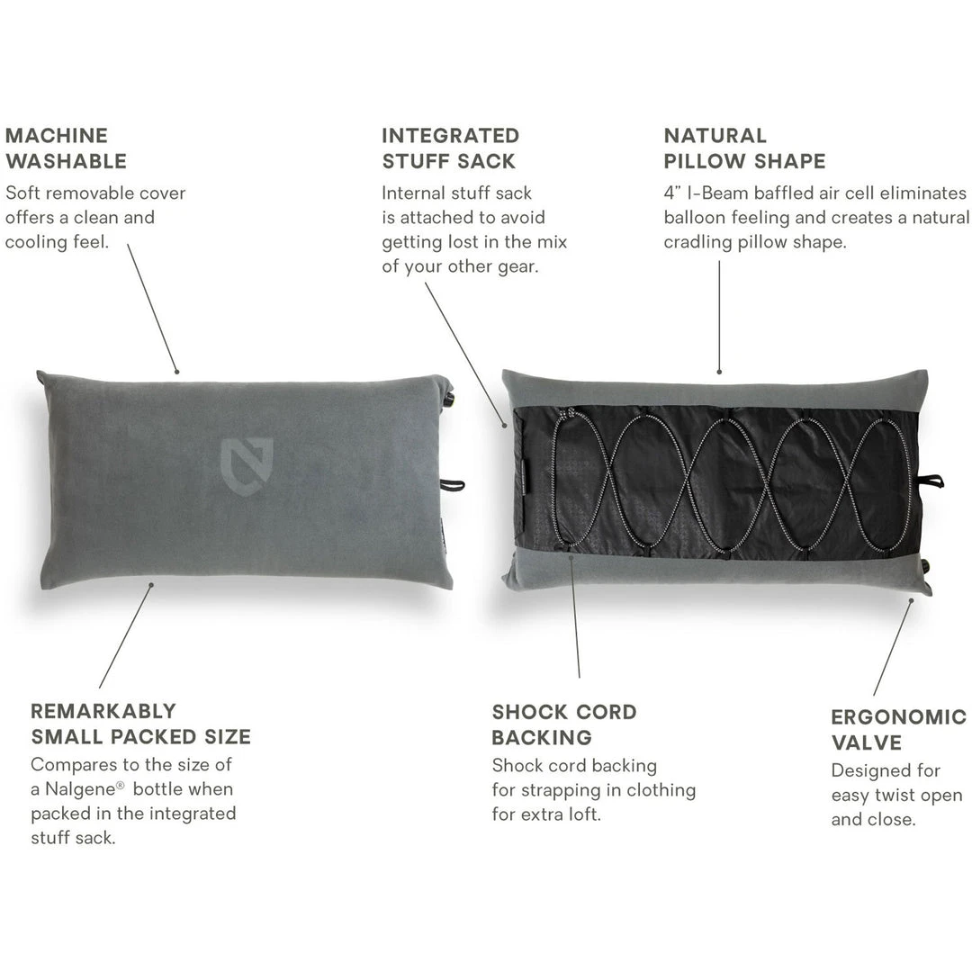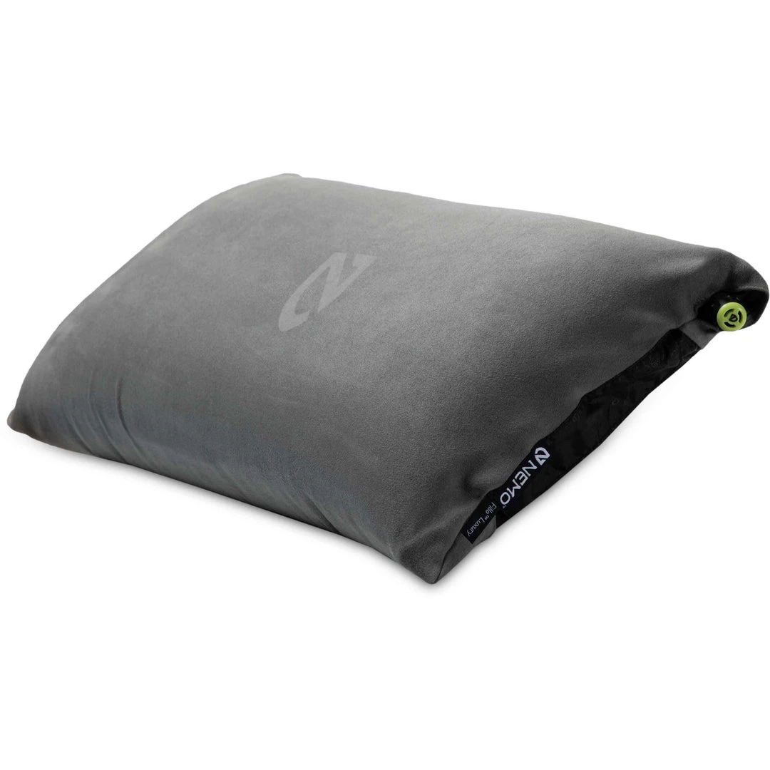 The Nemo Fillo Luxury Backpacking Pillow offers a larger size and shock cord lacing on the underside of the pillow to hold a folded up sweatshirt or gear to add loft. This is especially helpful for side-sleepers with broad shoulders.