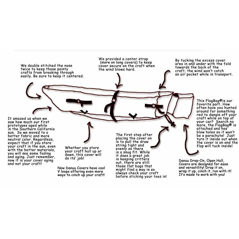 Danuu Kayak Covers extend the life of your craft by protecting it from the elements and harmful UV rays! Shown repeatedly to be the best in their class, simply drape it over your craft and cinch the straps for a custom fit. Danuu covers are the perfect outdoor storage and travel protection solution.