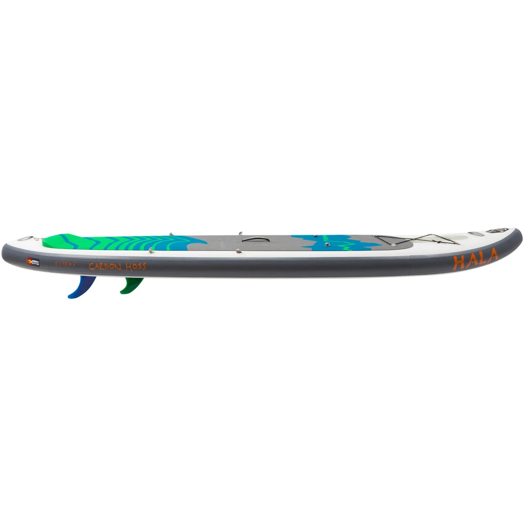 The Hala Carbon Hoss is an elite, high-performing, all-around focused board. It is the perfect size for those wanting a bigger board for stability and expeditions or larger paddlers. Carbon Construction gives this hardboard-like rigidity and glide rocker helps you fly along the shoreline.