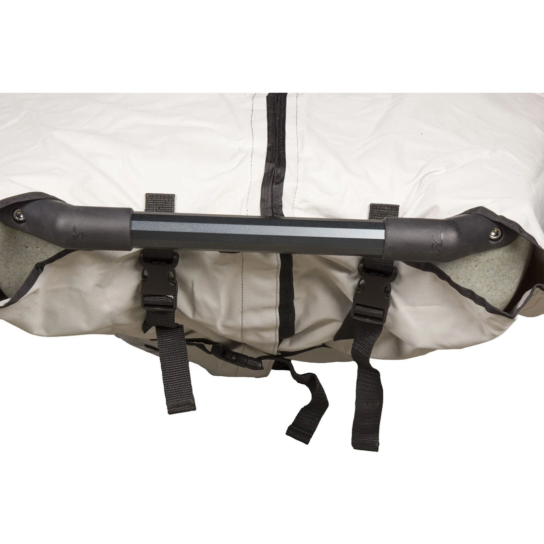 The Hobie Universal Fit Kayak Cover fits over the hull of your kayak like a fitted sheet on a mattress. It fits over the hull of your kayak when upright or upside down. You spend a lot of money on a kayak so protect it from all outside elements, you want to make sure it lasts a long time.
