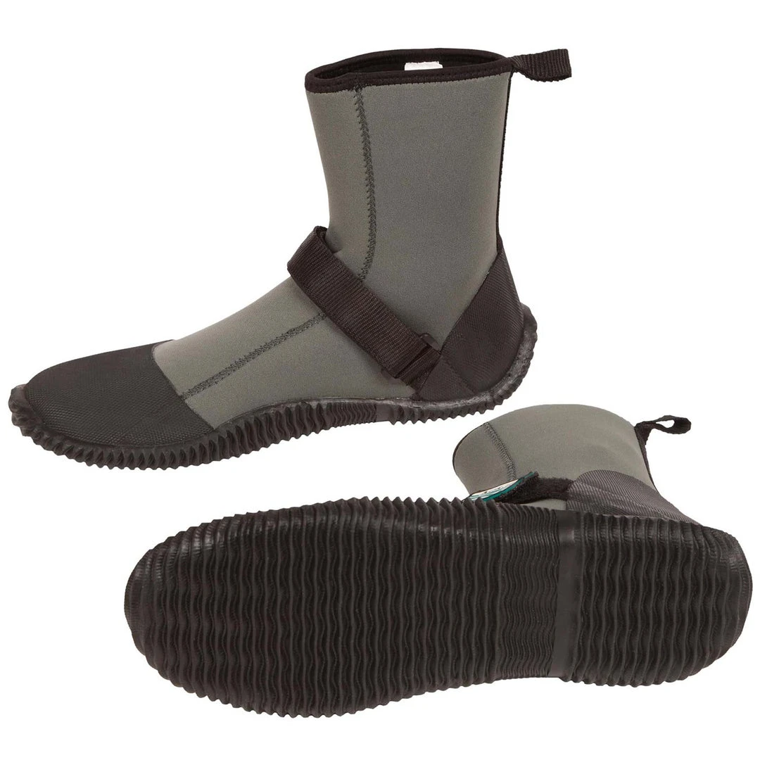 The Kokatat Scout neoprene water shoes are lightweight, mid-high paddling booties that slip on easily and offer great protection and support. The 3mm double-lined neoprene upper provides protection both in and out of the boat while the hook and loop instep adjustment strap provides lateral support.