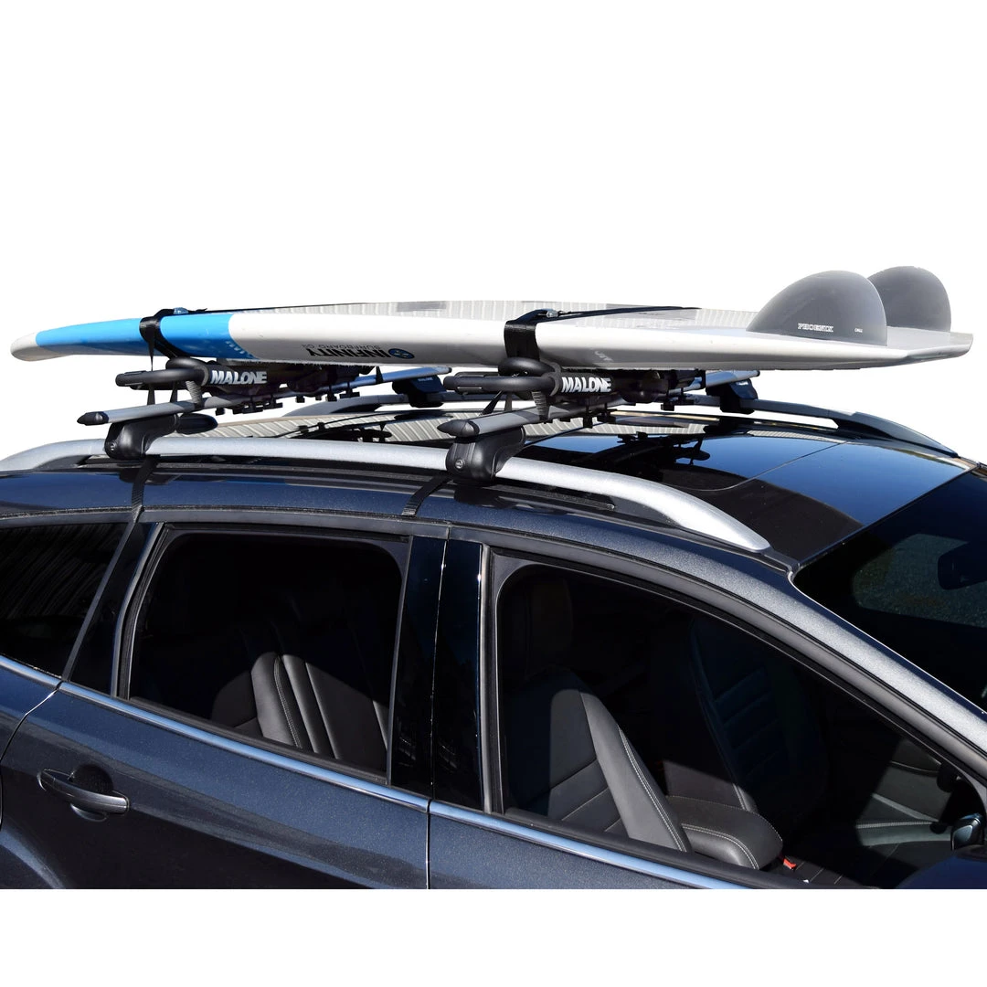 The Malone FoldAway-5 MultiRack Watersports Carrier can side-load a single recreational kayak, stack two kayaks, carry a canoe or large sit-on-top kayak, or transport any size SUP. Featuring universal load bar fit hardware.
