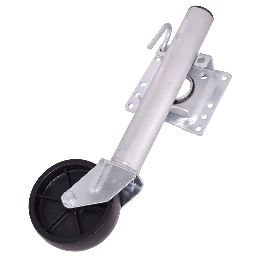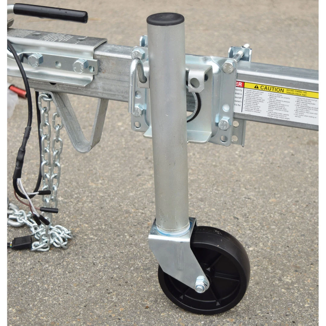 Replace your standard tongue skid plate with the Malone Trailer Tongue Kick Stand. The Kick Stand keeps your trailer level when unhitched and makes it easier to connect to the tow vehicle. A large integrated wheel allows the trailer to be easily rolled to the desired location by hand.