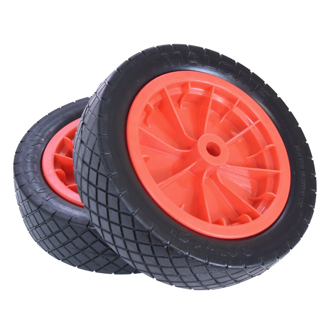 - Never-Go-Flat airless all-terrain tires work well over rough & rocky terrain