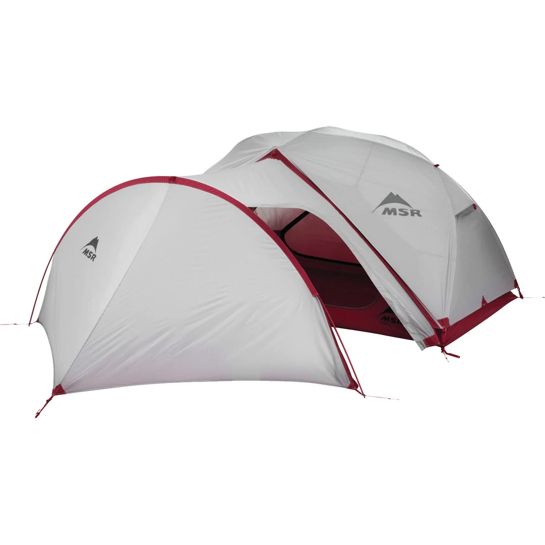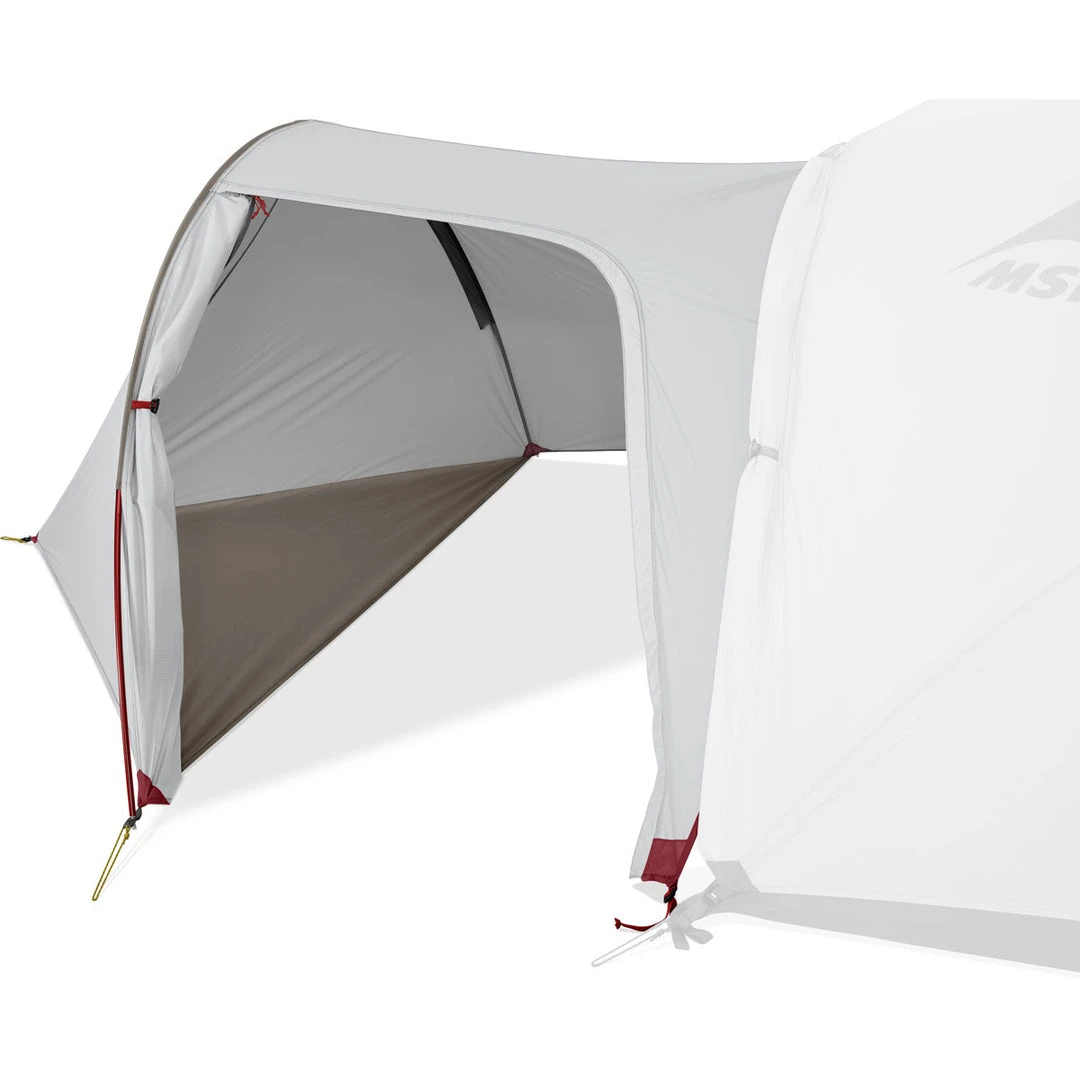 Turn your backpacking tent into a basecamp tent with the MSR Gear Shed Vestibule. This hooped vestibule provides additional storage space to increase livable space in your tent. A partial floor keeps gear dry and clean, while the integrated design and large door allows for easy access.