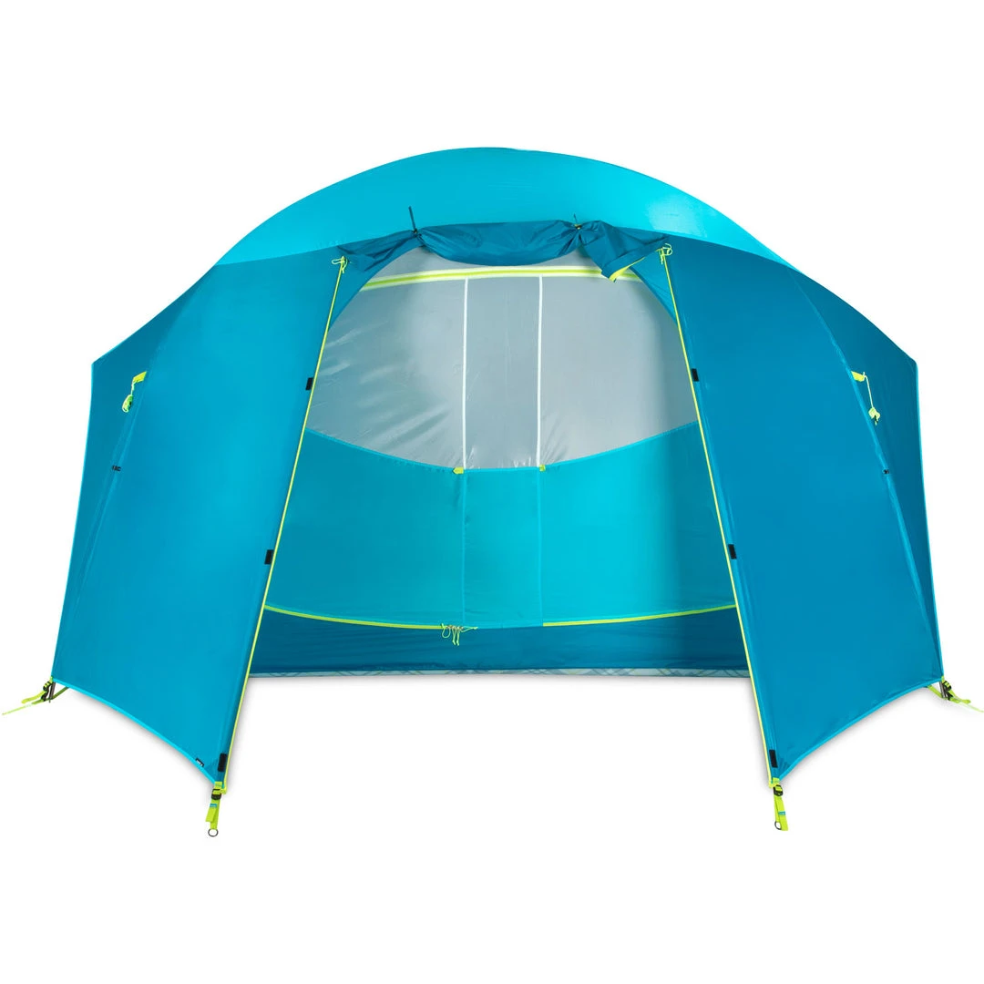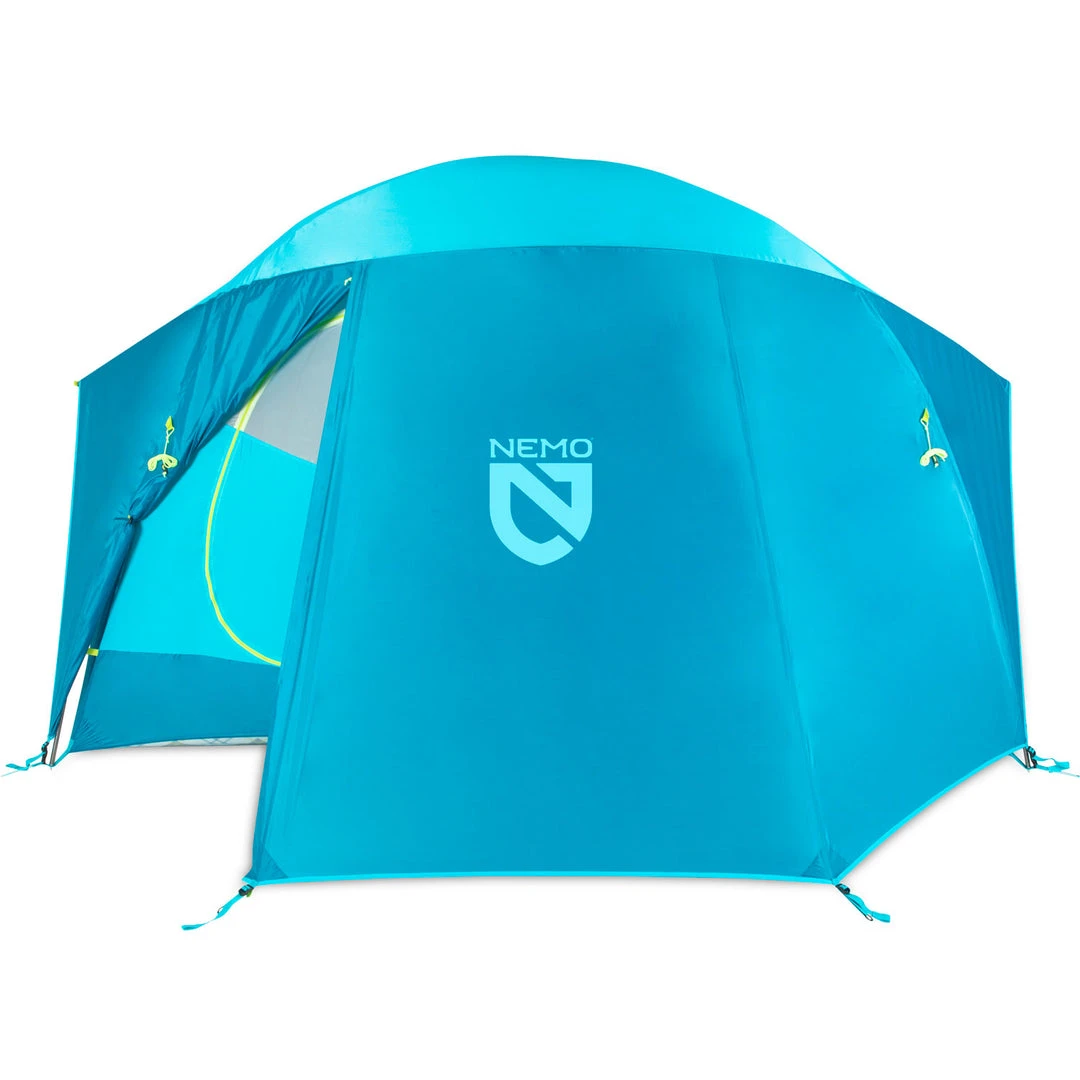 Designed for family camping, the Nemo Aurora Highrise 6 Person Camping Tent features a roomy interior, massive vestibule area, and unique frame that creates more vertical volume for standing comfort. The tent has multiple gear pockets that make organizing equipment easier.