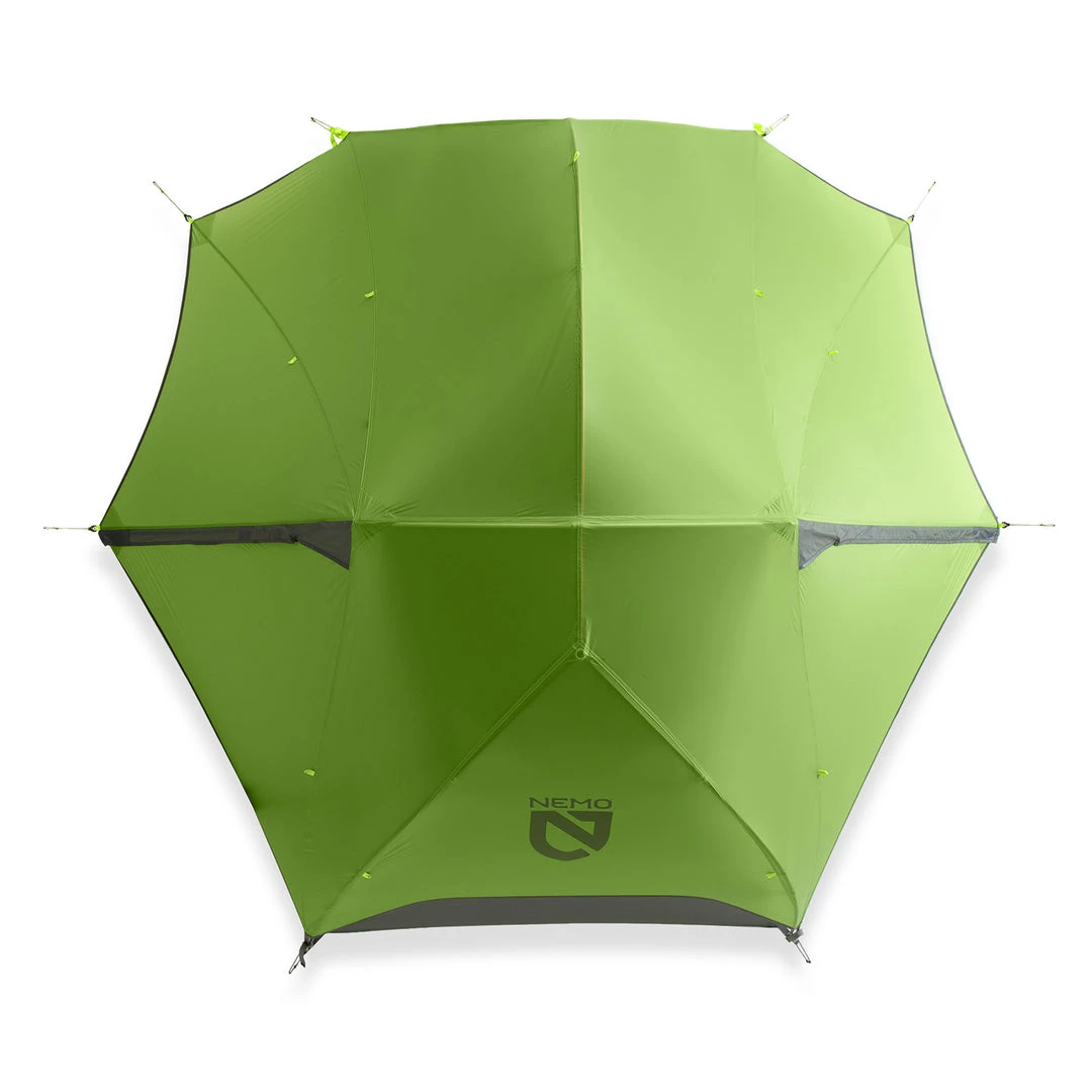 The Nemo Dragonfly 2-Person Camping Tent fills the void for most backpackers with an ideal balance of weight and livability in a free-standing tent. 2 large vestibules are designed to fit gear without obstructing the entries and have multiple roll-back points to customize visibility and coverage.
