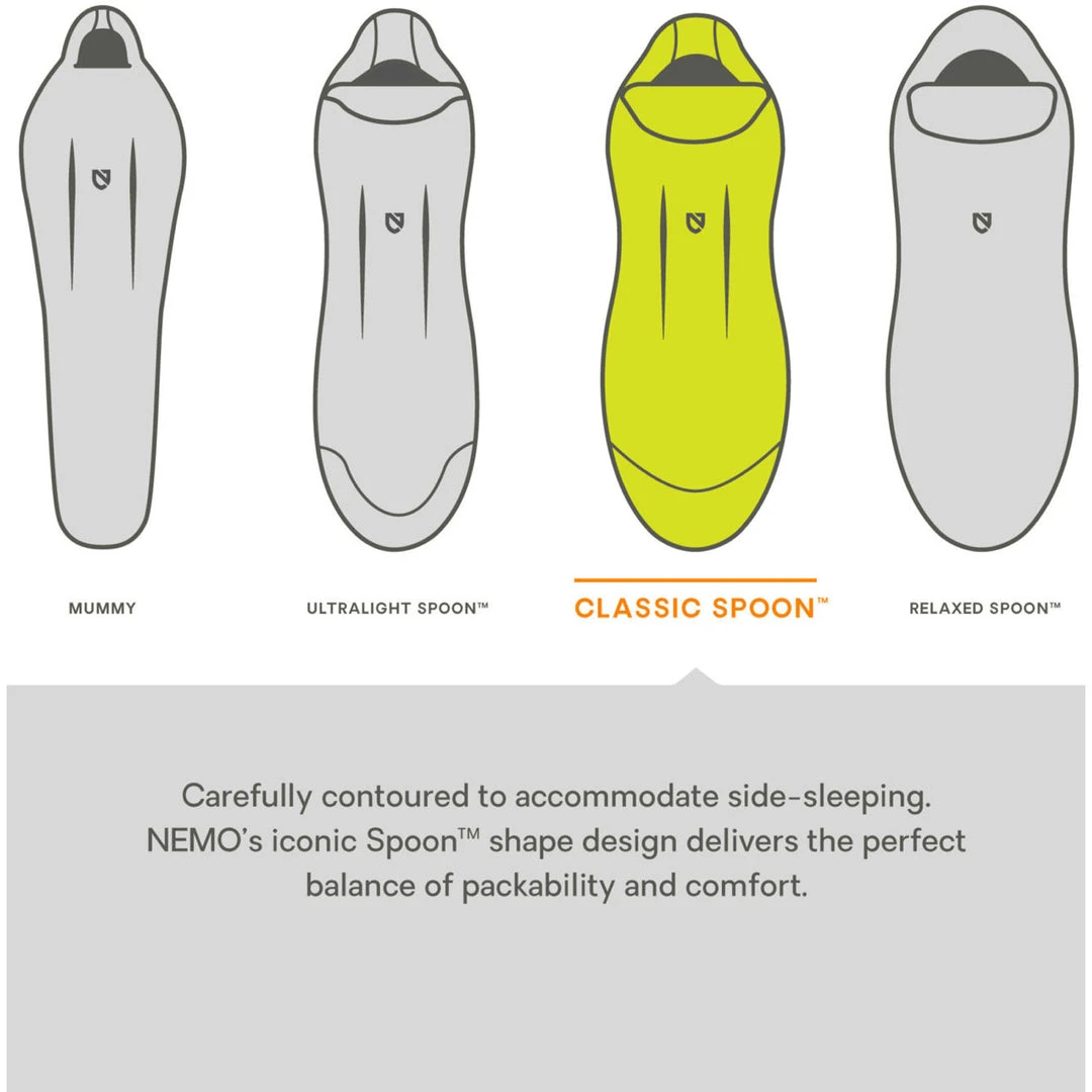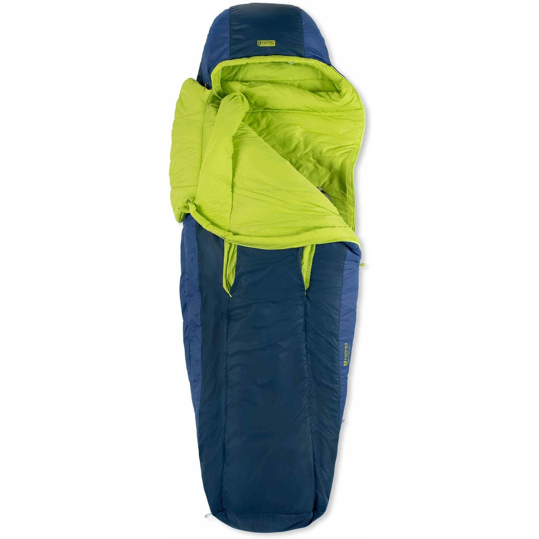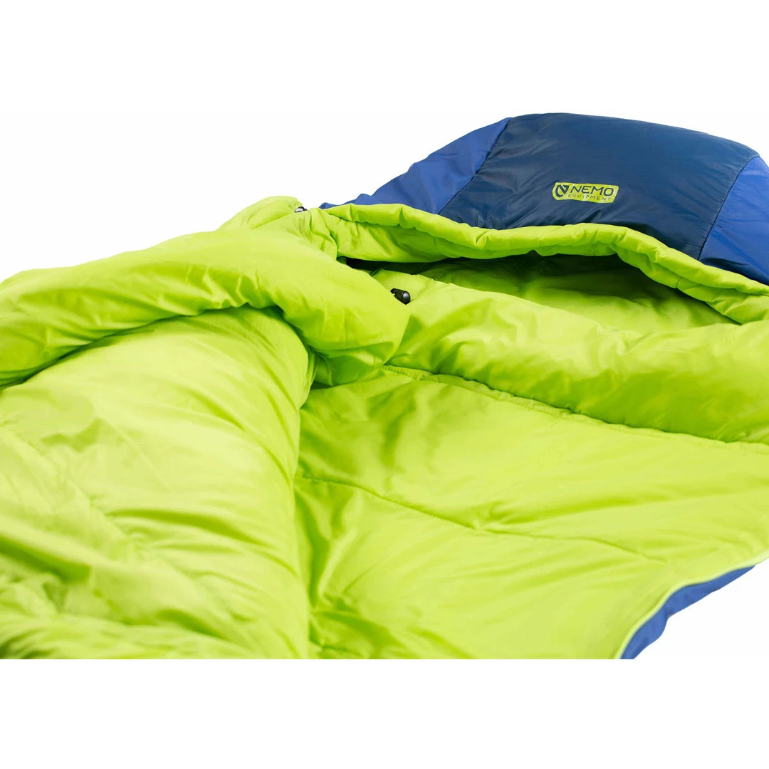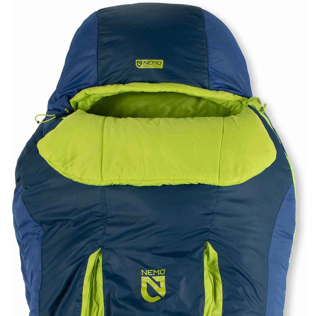 Seventy percent of people sleep on their side, yet mummy bags are not designed to accommodate this. The Nemo Men’s Forte 20-Degree Synthetic Sleeping Bag has been updated with Primaloft’s, lightweight, ultra-lofty and supremely resilient RISE insulation featuring 80% post-consumer recycled content.