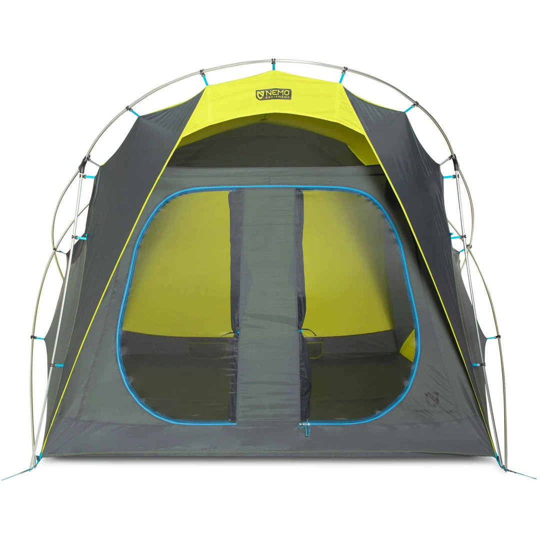The Nemo Wagontop 4-Person Camping Tent is luxury camping embodied, perfect for families or groups of all sizes. Unique pole structure provides unparalleled interior space and room to stand up and stretch, allowing for almost perfectly vertical walls and built-in overhangs at both ends.