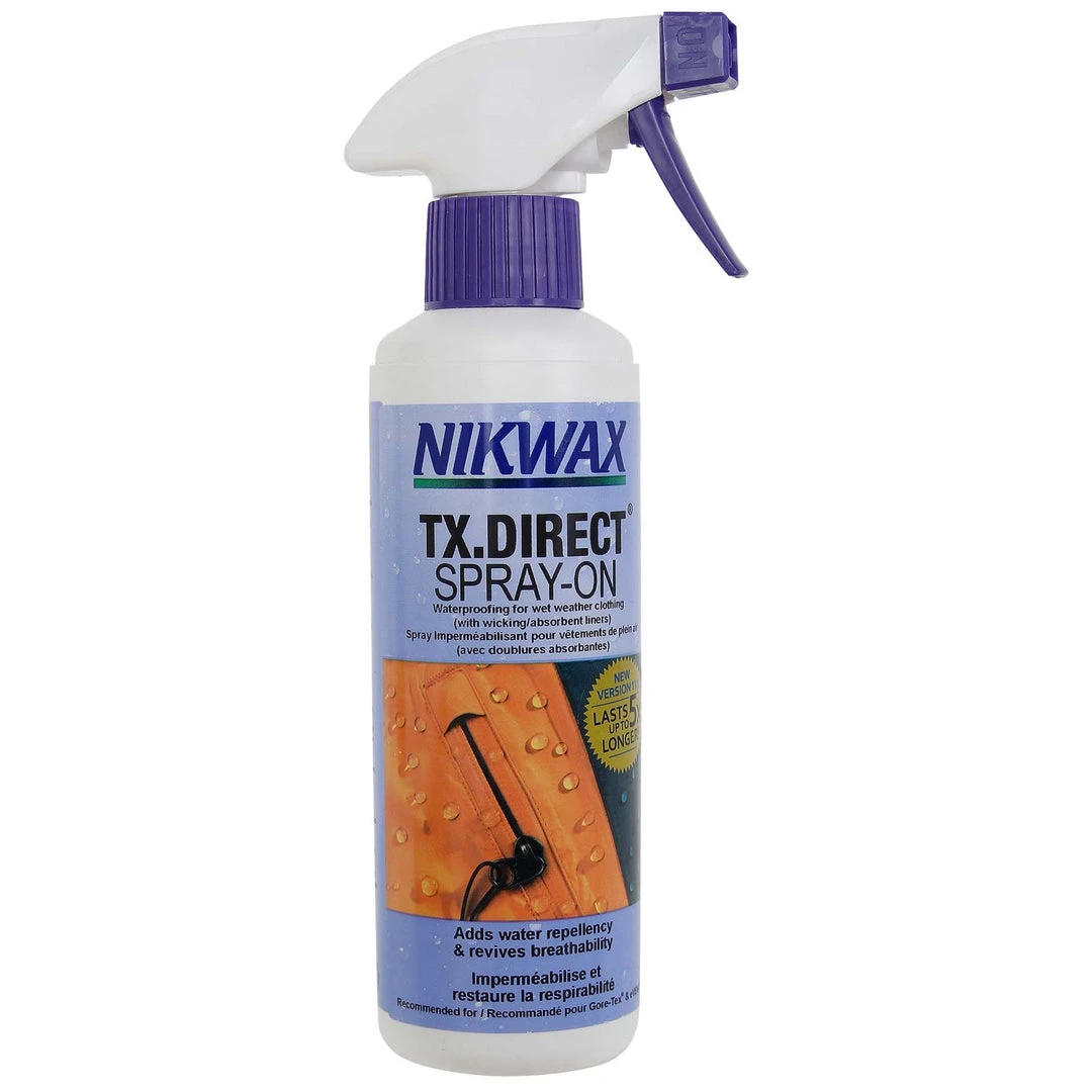 NikWax TX Direct Spray-On Waterproofing revives the water-repellency and breathability of fabrics used in technical outdoor outerwear such as dry suits, dry tops, splash wear, jackets, ski wear and more. Maintaining DWR coatings is essential to keeping your outdoor gear repelling water effectively.