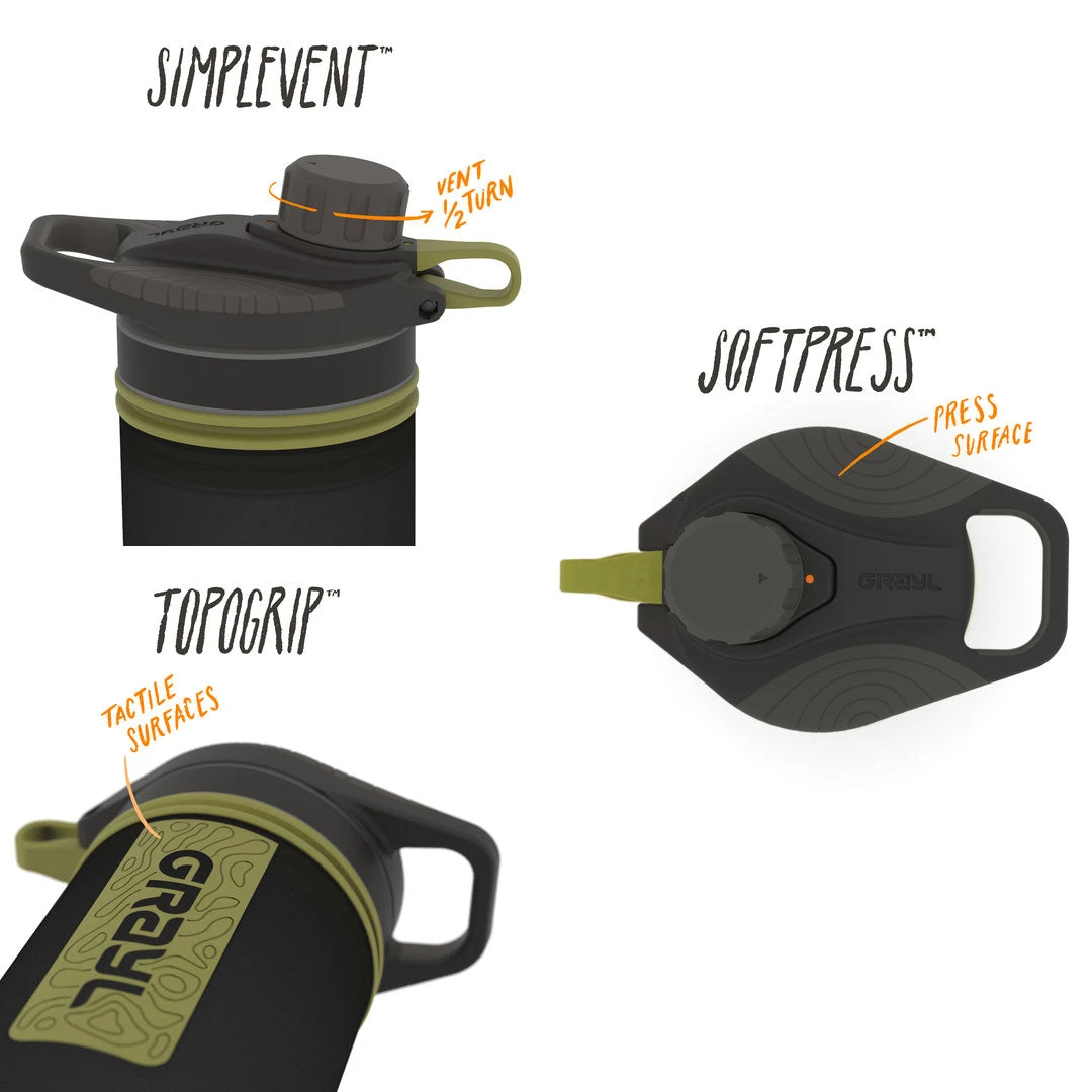- SimpleVent Drink Cap vents air while purifying & blocking cross-contamination, grime & dirt