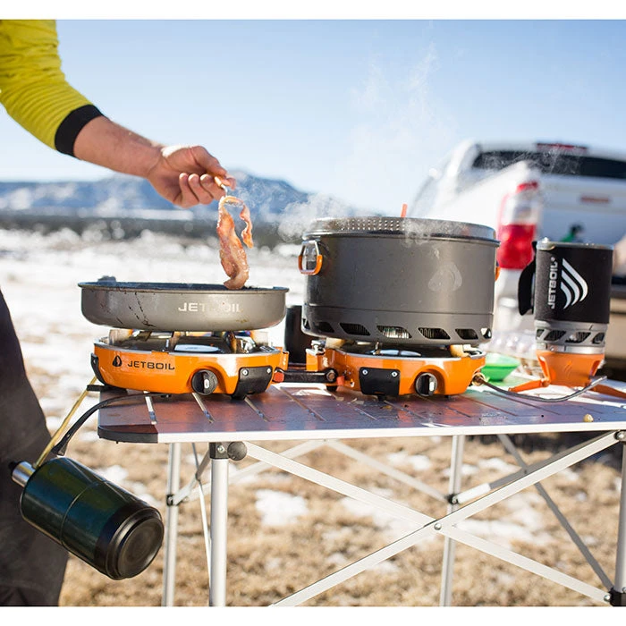 Complement your multi-burner camp stove with the Jetboil Luna Satellite Burner. The Luna attaches to the Jetlink fuel output port of Genesis and HalfGen stoves (sold separately) to create a larger outdoor cooking range. An innovative port provides fuel without requiring additional fuel sources.