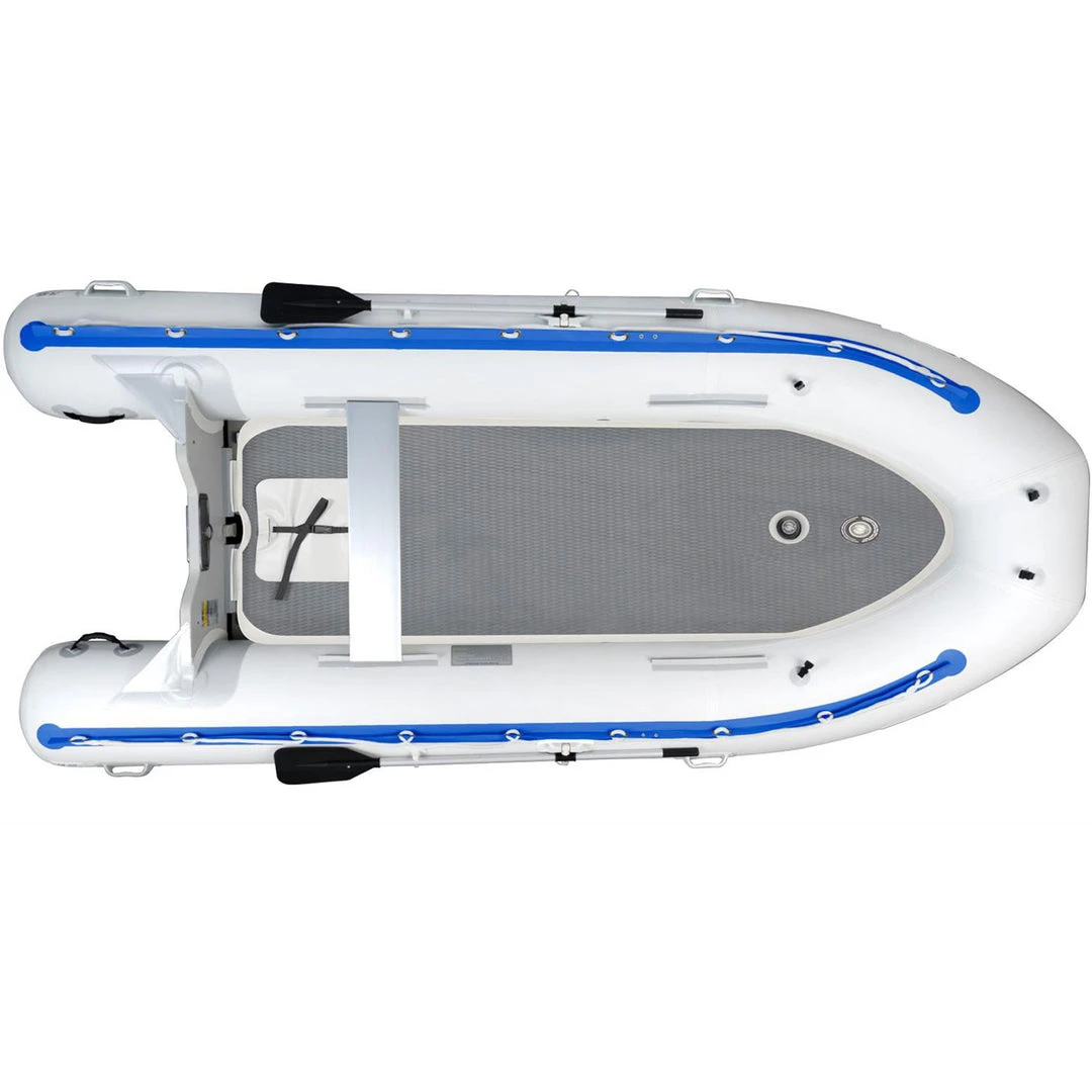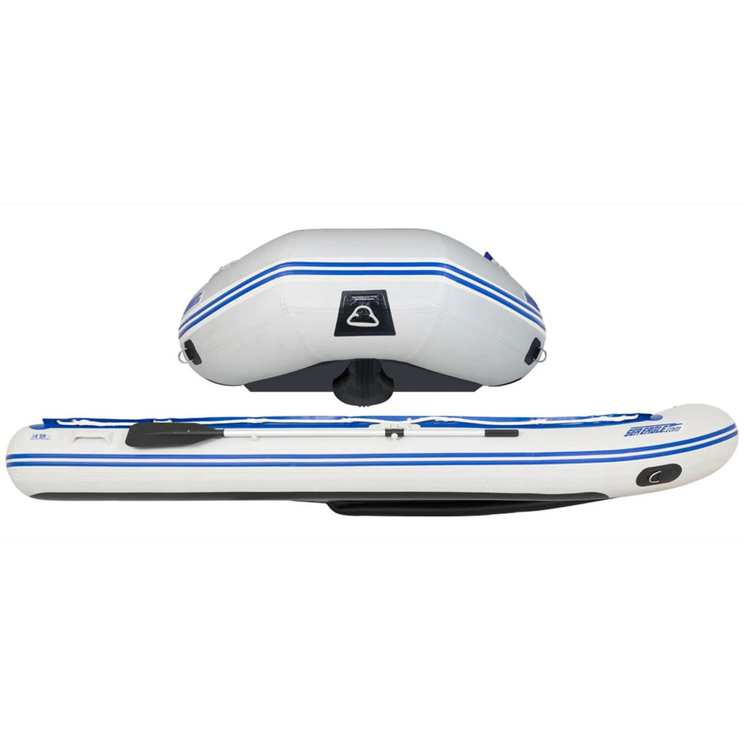 The Sea Eagle 14′ Sport Runabout Swivel Seat Canopy Drop Stitch Inflatable Raft Package is a favorite of larger groups as well as police and fire departments alike. The great advantage of these boats is their lightweight to size ratio. Which increases stow-ability and reduces overall hull weight.