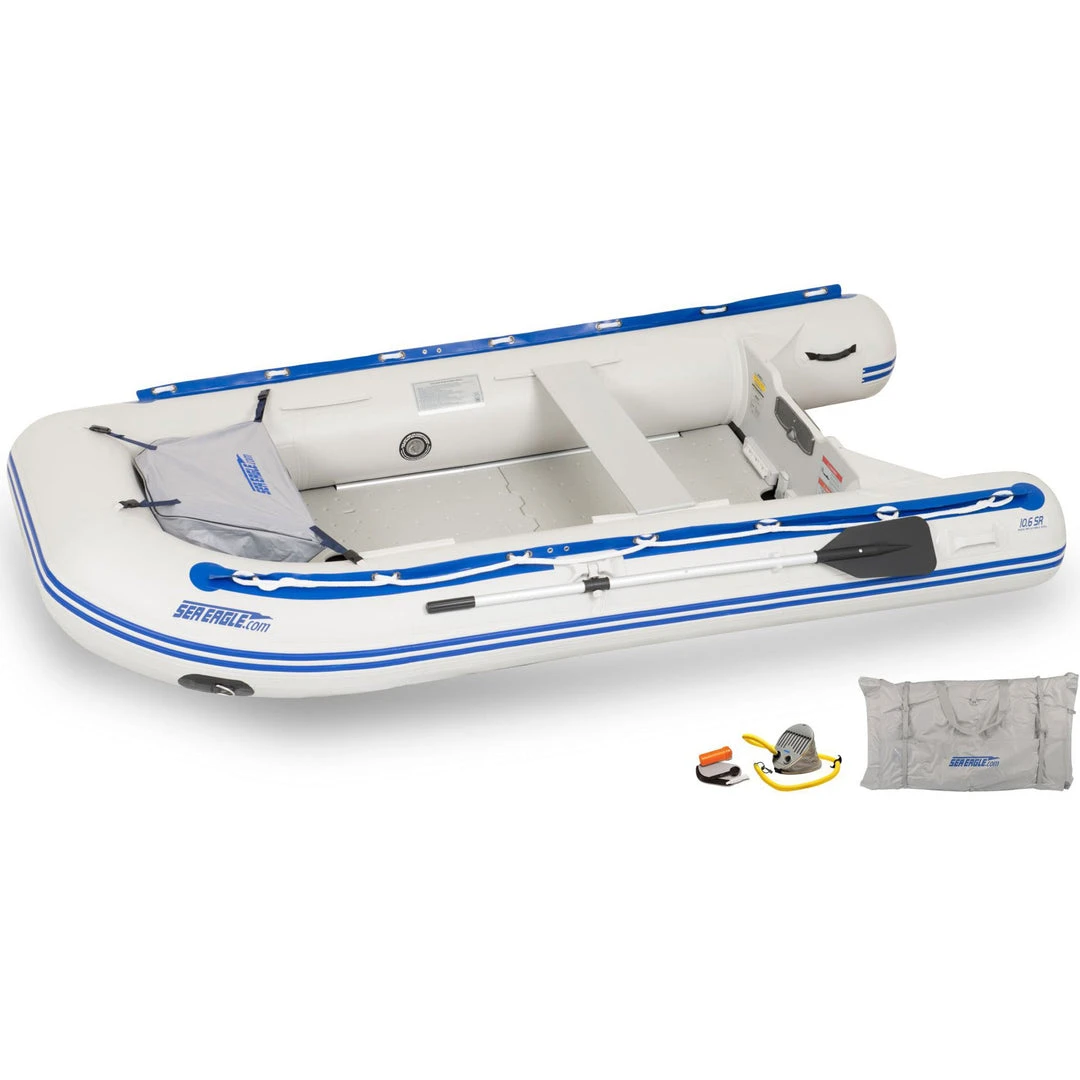 The Sea Eagle 10’6 Sport Runabout Inflatable Raft Deluxe Package makes for the perfect ship to shore tender. Great for exploring when anchored up, moored, or just plain running about. This small boat packs a truly big punch.