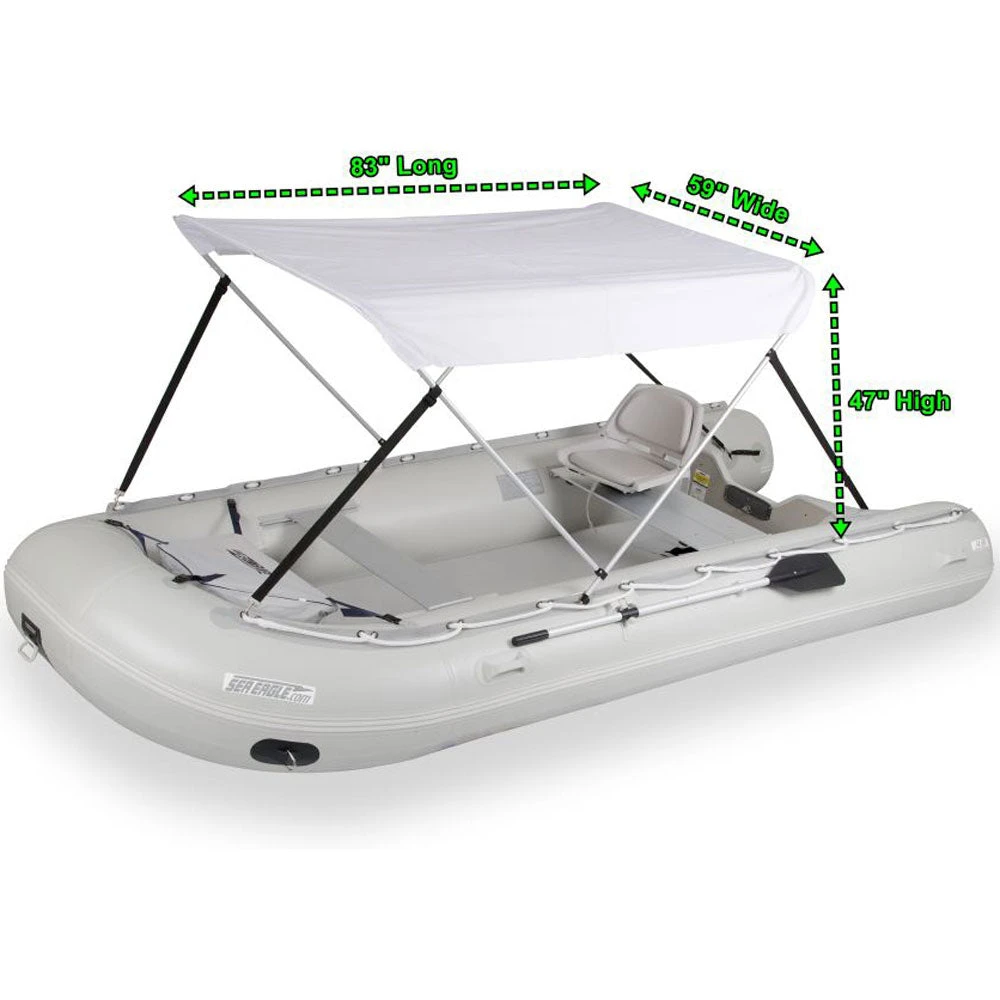 The Sea Eagle FastCat12 Swivel Seat Canopy Inflatable Cataraft Package is a great package for those who already have their own motors. This catamaran-style, rigid, high-pressure, all-drop stitch constructed, easy to set up hull is the most innovative boat to hit the market!
