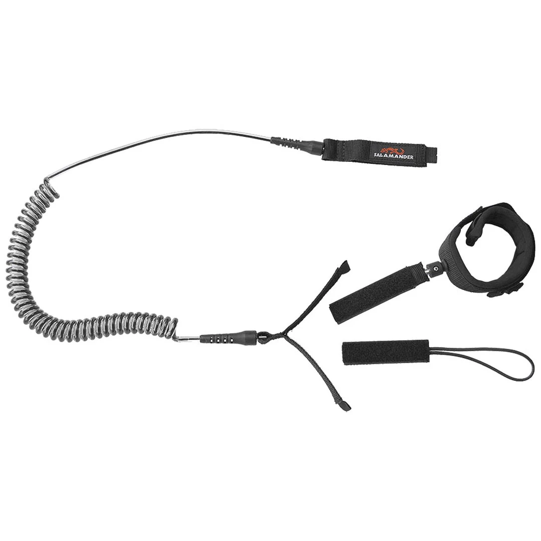 The Salamander Coiled SUP Leash With Ankle Strap is an energy absorbing break-away leash with heavy-duty swivels at both the board connection and paddler connection. It can be attached to a Rescue PFD or a quick release belt. Safety is key when it comes to attaching yourself to your water craft!