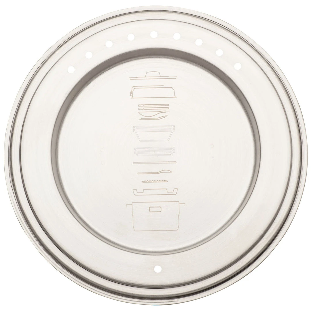 - All components nest easily inside the 3.7-quart pot & secure with a locking bungee for transport