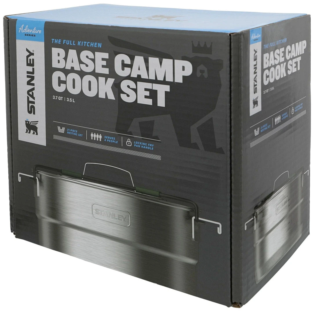 The Stanley Full Kitchen Base Camp Cook Set is a 19-piece, nesting bundle of camp chef necessities perfect for your van down by the river, your self-support paddling expedition or your family-of-four car-camping adventures.