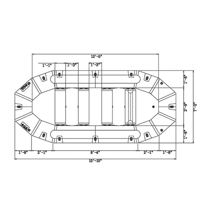 - 5-panel symmetrical raft construction w/ 4 tube air chambers