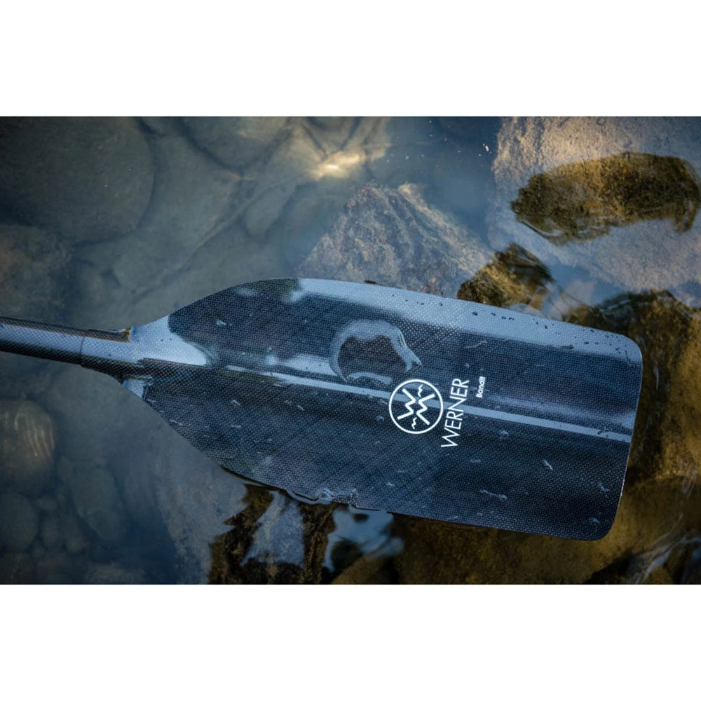 The Werner Bandit Adjustable Carbon Canoe Paddle is an aggressive spooned canoe paddle for technical river runners and slalom canoeists. Its carbon construction gives you Werner’s lightest swing weight option. Performance and reliability are the goals for this whitewater canoe paddle.