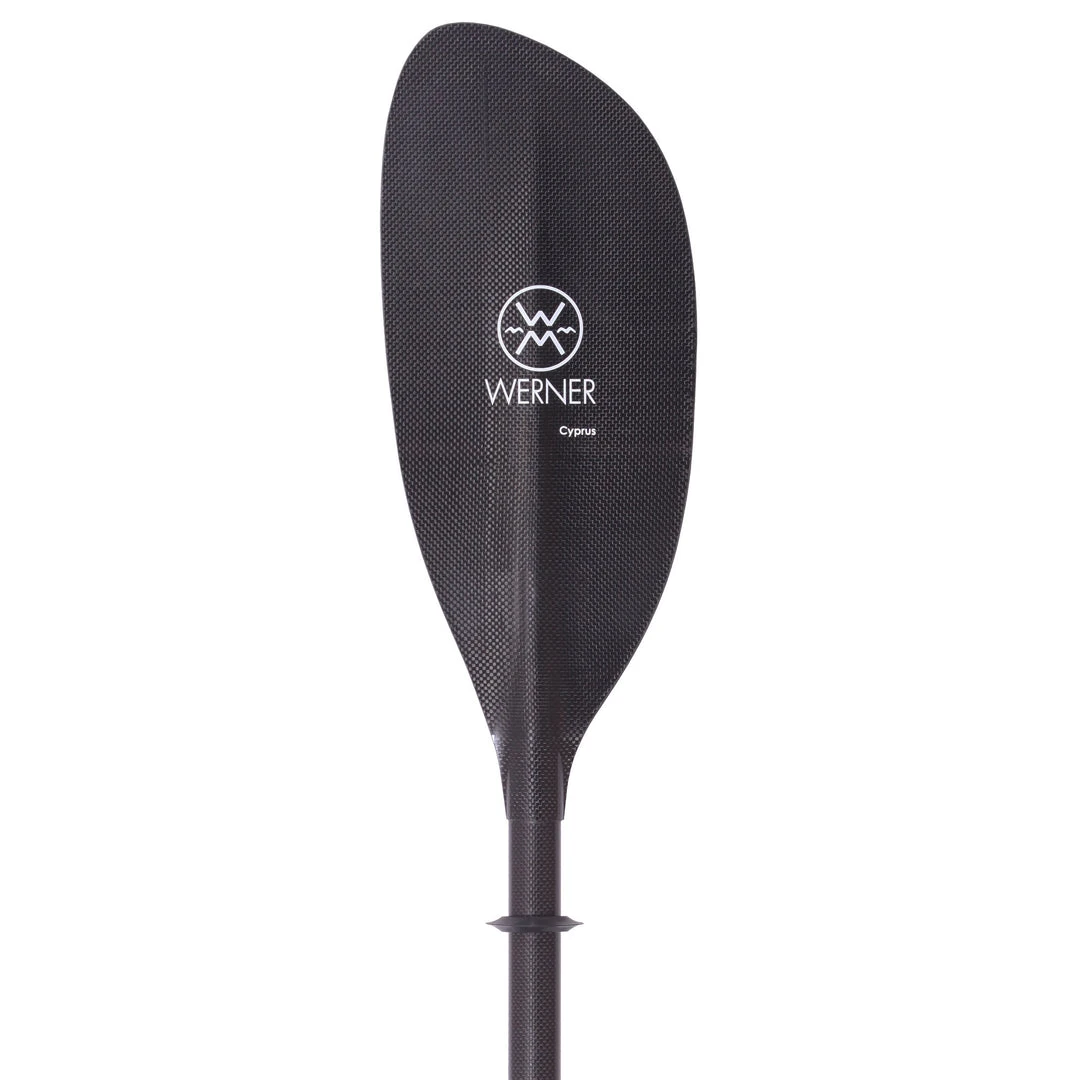 The Werner Cyprus Carbon Kayak Paddle is the smart choice for those playing or cruising with a high-angle style of paddling and want the conservative feel of a mid-sized blade. You’ll feel exceptionally light, buoyant strokes while the smooth back face gives a quiet entrance and exit from the water.